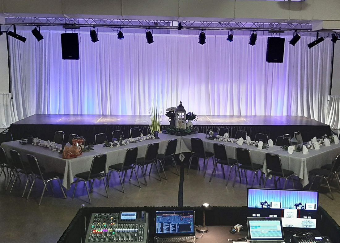 - Staging and Scenic Elements: Create a professional backdrop for your event.